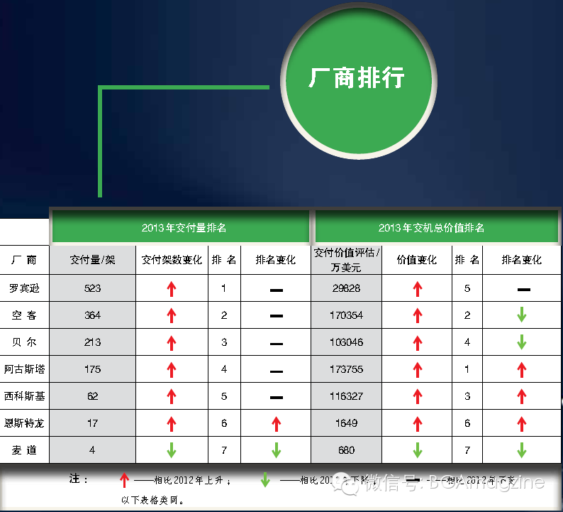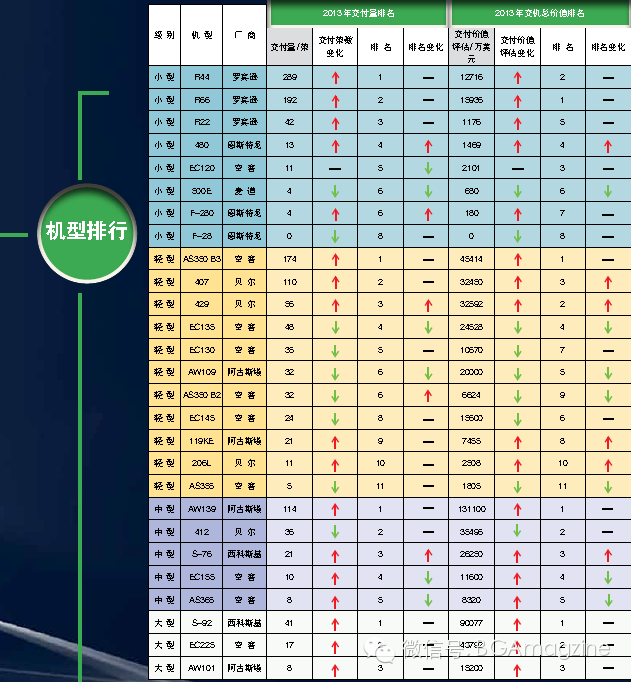 目前,全球主要的民用直升机制造商有10家左右,其中空客、贝尔、罗宾逊、恩斯特龙、阿古斯塔、西科斯基、麦道等7 家制造厂商占据了绝大部分的市场份额。为了能全面反映全球民用直升机的生产与交付状况,并使读者能够直观地了解不同类别直升机的市场欢迎程度,以及各个厂商的不同机型的生产、销售业绩状况和发展趋势,本刊特制作完成了《2013 全球民用直升机交付排行榜》。 榜单分为厂商排行和机型排行两类,根据直升机的年交付量及年交付总价值分别进行了排名。此外,为了反映各厂商与机型的交付情况及市场位置一年来的变动趋势,本刊对照2012年度的相应数据,展示了其交付架数、交付总价值及市场排名的变化。 直升机机型的分类,可以按照发动机类型加以区别。直升机的发动机分为活塞式和涡轴式两种,目前仅有少数几个机型装配了活塞式发动机,因此,本排行榜采取了按最大起飞重量分类这一方式。根据最大起飞重量,一般可将民用直升机可分为小型、轻型、中型和大型四种类型。小型直升机的最大起飞重量在2吨以下,轻型直升机最大起飞重量在2-4吨左右,中型直升机最大起飞重量在4-10吨,大型直升机最大起飞重量在10-20吨左右,20吨以上的超重型直升机通常为非民用用途,不在本排行榜的统计范围之内。 2013年,全球七家主要直升机制造商共交付各类型直升机(民用用途)1358架,其中小型直升机555架,轻型548架,中型和大型分别为189架和 66架。通过观察排行榜中直升机的交付数量,可以看出不同重量级机型的市场需求分布。例如,2013年轻型和小型直升机占据了总交付量的81%左右,如此高的市场占有率反映出这两种类型的直升机有着灵活和广泛的适用性。同样,通过排行榜可以看出,2013年全球交付的中型和大型民用直升机的种类共计不到 10种,交付数量仅占全球总架数的19%,而其交付总价值则占到了市场总值的60%,这反应出这两种直升机由于其生产技术的先进性和复杂性等因素而具备了更高的市场价值。 通过对排行榜中直升机交付机型的分析,还可以观察出不同制造商在各级别机型中的相对市场优势。例如,空客直升机涵盖了从轻型到大型的全系列产品并都有较高的交付量,该公司的总交付量和总交付价值均居全球第二;罗宾逊和恩斯特龙虽然均侧重生产小型直升机,然而罗宾逊的交付量一直稳居世界第一,而恩斯特龙则相对落后,但是恩斯特龙有进步的趋势,无论是从交付量还是交付价值来看均如此;贝尔在轻型直升机市场中依然拥有强大的市场竞争力,但是和空客相比,依然存在一丝差距;在中型直升机市场,毫无疑问,阿古斯塔拥有绝对的统治力,其交付业绩一直稳居第一;而在大型直升机市场,西科斯基的优势则更加明显。总体来看, 轻型直升机市场的竞争比较激烈,机型多,且市场份额的波动较大,而在小型、中型、大型直升机市场,往往一家独大,某一个厂商的机型往往占据超过60%的市 场份额。 这里需要特别指出的是,本排行榜统计的各类机型中,不包含非民用用途的直升机,这并不意味着所有上述直升机制造商只生产民用类机型,实际上,技术相对稳 定、销售量较大、制造能力强的一些厂商也交付了相当数量的军用直升机。此外,本排行榜中的部分机型有改进型号,为了反映市场的最新现状,计算交付价值时则采取最新改进型号的售价,例如西科斯基S-76系列中最新的型号为S-76D,以及贝尔206系列中最新型号为206L-4。 本排行榜数据参考了2012及2013年度美国通用航空制造协会(GAMA)的年度报告 STATISTICALDATABOOK &INDUSTRY OUTLOOK,以及2013 PURCHASE PLANNING HANDBOOK (Business & Commercial Aviation,2013,7), 并结合了本刊调研的数据。由于时间仓促,疏漏在所难免,不足之处,敬请广大读者指正。 --信息来源于《公务与通用航空》2014年04期。 |